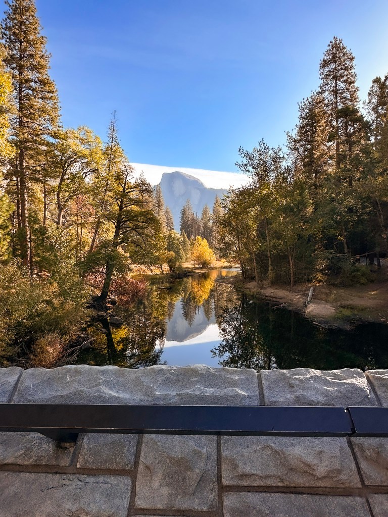 You’ll find a boardwalk in Cook’s meadow that offers beautiful views of Half Dome. Make sure to stay on trail and don’t walk on the meadow itself. Yosemite National Park had been trying to restore this meadow for decades.
